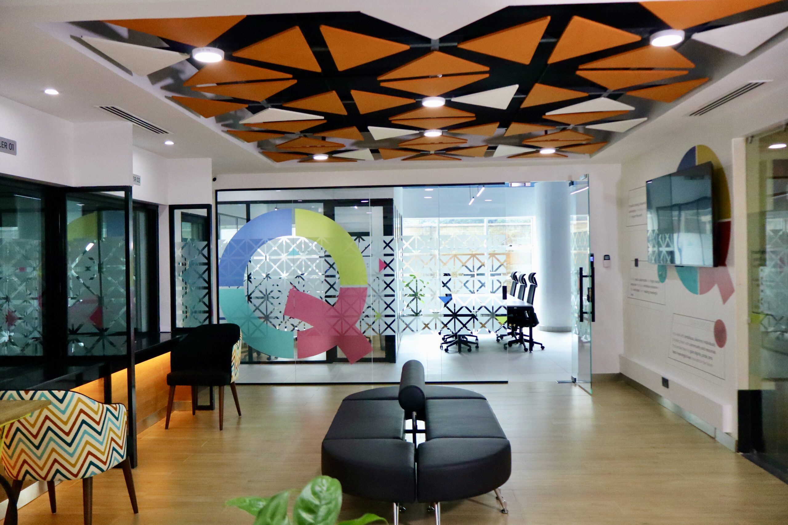 Design Forty specializes in commercial and corporate office designs for large and small scale organizations. We use aluminum and glass partitioning for walls, carpets or tiles for floors, window blinds for windows, gypsum bulk heads for ceilings and LED lighting using our own Lumina lights.